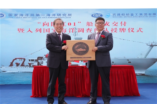 9时18分,码头上汽笛声响起,这艘我国目前最先进的新一代全球级现代化海洋综合科考船船正式交付国家海洋局第一海洋研究所(以下简称“海洋局一所”)使用,并入列国家海洋调查船队,成为我国海洋调查船队的又一核心力量。